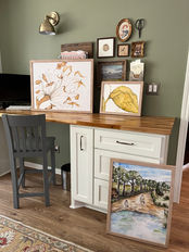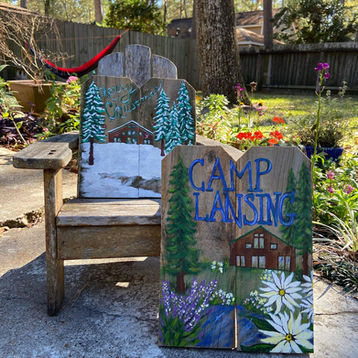 Beth's Tree Farm is available for custom orders, murals (interior or exterior), house portraits, dog portraits, embroidery or watercolor commissions and fence post painting parties.
